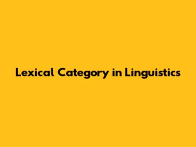 Lexical Category: A Simple Guide For Linguistics
