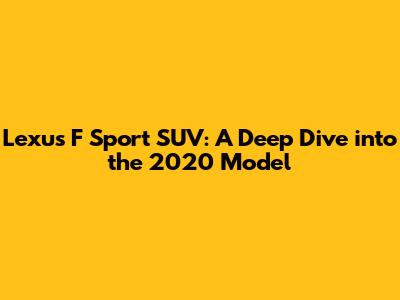 Hey guys! Today, we're diving deep into the Lexus F Sport SUV, specifically the 2020 model. If you're even remotely interested in luxury SUVs that pack a punch in both style and performance, you’re in the right place. We’ll cover everything from the exterior design and interior features to the driving experience and overall value. Buckle up, because this is going to be a comprehensive ride!
