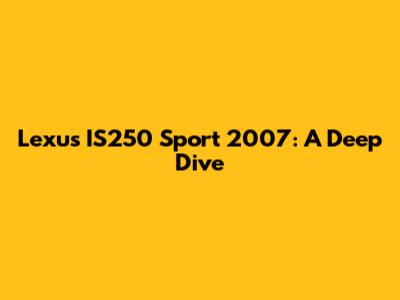 Hey guys! Today, we're diving deep into the Lexus IS250 Sport 2007. If you're considering buying one, already own one, or are just curious, you're in the right place. We'll cover everything from its performance and features to common problems and overall reliability. Buckle up; it's gonna be a detailed ride!