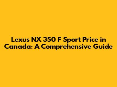 Lexus NX 350 F Sport Price In Canada: A Comprehensive Guide