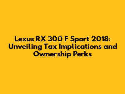 Lexus RX 300 F Sport 2018: Tax Insights & Ownership Guide