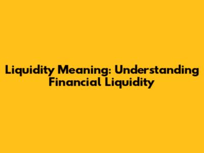 Liquidity Meaning: Understanding Financial Liquidity