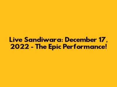 Live Sandiwara: December 17, 2022 - The Epic Performance!