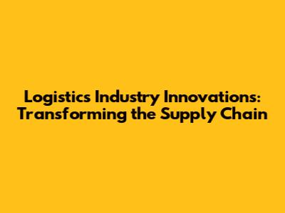 Logistics Industry Innovations: Transforming The Supply Chain