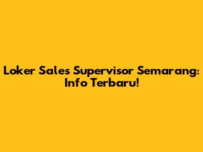 Loker Sales Supervisor Semarang: Info Terbaru!