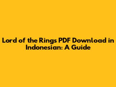 Lord Of The Rings PDF Download In Indonesian: A Guide