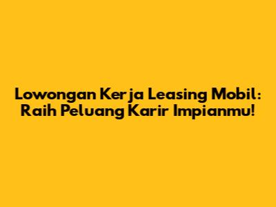 Lowongan Kerja Leasing Mobil: Peluang Karir & Tips Sukses
