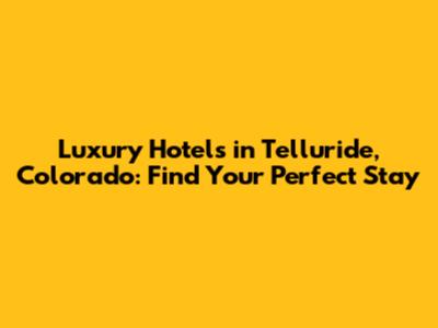 Telluride, Colorado, is a premier destination for travelers seeking breathtaking mountain scenery and thrilling outdoor adventures. For those who appreciate the finer things in life, Telluride offers a selection of luxury hotels that provide unparalleled comfort, exceptional service, and unforgettable experiences. Whether you're planning a romantic getaway, a family vacation, or a solo escape, finding the perfect luxury hotel in Telluride can elevate your trip to new heights. This guide will explore some of the top luxury hotels in Telluride, highlighting their unique amenities, features, and nearby attractions to help you make an informed decision and create memories that will last a lifetime.