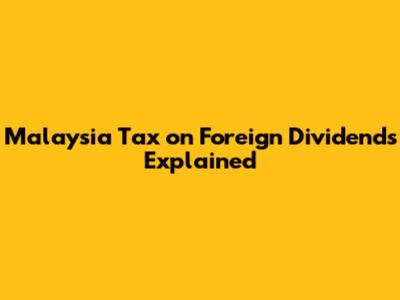 Malaysia Tax On Foreign Dividends Explained
