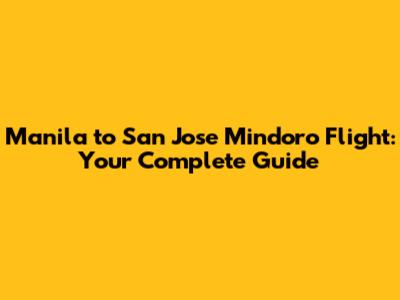 Manila To San Jose Mindoro Flight: Your Complete Guide
