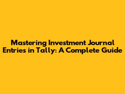 Mastering Investment Journal Entries In Tally: A Complete Guide