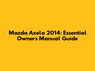 Mazda Axela 2014: Essential Owner's Manual Guide