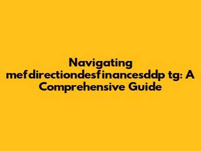 Hey guys! Let's dive into the world of mefdirectiondesfinancesddp tg. It might sound like a mouthful, but stick with me. We're going to break down what it is, why it's important, and how you can navigate it like a pro. Think of this as your friendly guide to understanding a critical aspect of finance and direction within a specific context.