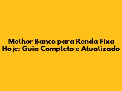 Melhor Banco Para Renda Fixa: Guia Completo E Atualizado