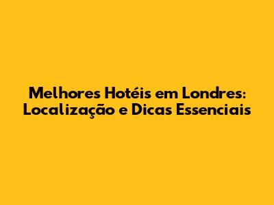 Melhores Hotéis Em Londres: Localização E Dicas Essenciais