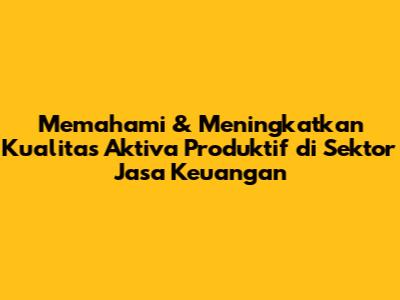 Memahami & Meningkatkan Kualitas Aktiva Produktif Di Sektor Jasa Keuangan