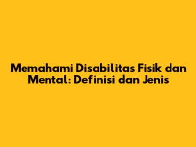 Disabilitas fisik dan mental adalah kondisi yang memengaruhi fungsi tubuh dan kemampuan kognitif seseorang. Memahami perbedaan dan jenis-jenis disabilitas adalah langkah penting dalam membangun masyarakat inklusif dan suportif. Dengan bersikap empati, menawarkan bantuan, dan menciptakan lingkungan yang aksesibel, kita dapat membantu orang dengan disabilitas mencapai potensi penuh mereka dan hidup mandiri. Jadi, guys, mari kita bersama-sama menciptakan dunia yang lebih inklusif dan ramah bagi semua orang!