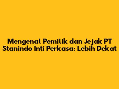 Mengenal Pemilik Dan Jejak PT Stanindo Inti Perkasa: Lebih Dekat