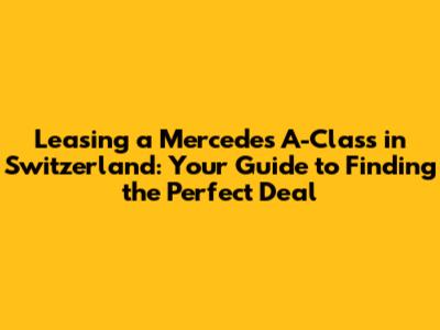 Leasing a Mercedes A-Class in Switzerland can be a fantastic option for those who want to drive a premium car without the financial burden of ownership. By doing your research, comparing offers, and understanding the fine print, you can find a lease deal that fits your needs and budget. So, go ahead and explore the world of Mercedes A-Class leasing – your dream car might be closer than you think!
