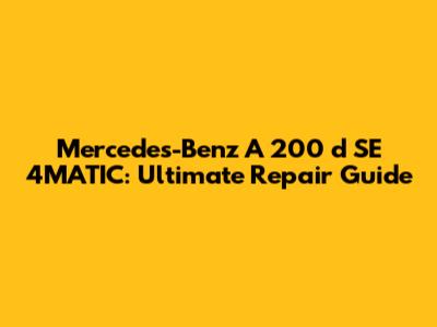 Mercedes-Benz A 200 D SE 4MATIC: Ultimate Repair Guide