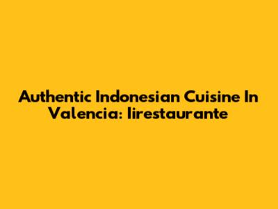 Authentic Indonesian Cuisine In Valencia: Iirestaurante