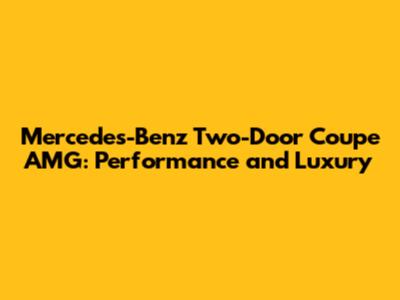 Mercedes-Benz Two-Door Coupe AMG: Performance And Luxury