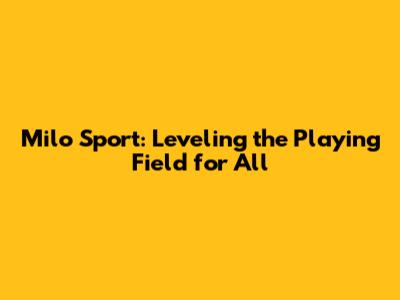 Milo Sport: Leveling The Playing Field For All