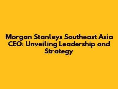 Hey everyone! Today, we're diving deep into the world of Morgan Stanley and specifically, their leadership in Southeast Asia. This region is super dynamic, full of economic opportunities, and crucial for global players like Morgan Stanley. We'll be taking a closer look at the key figures, their strategies, and what makes the firm tick in this fascinating part of the world. So, grab a coffee (or your favorite beverage), and let's get started. We will explore the leadership, strategies, and impact of the CEO in the Southeast Asia region.