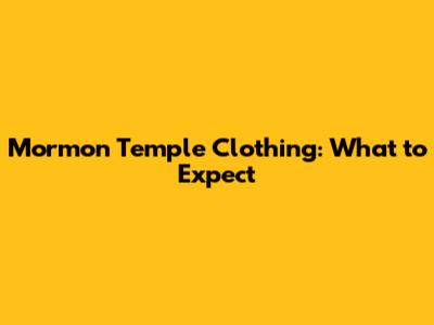Mormon Temple Clothing: What To Expect