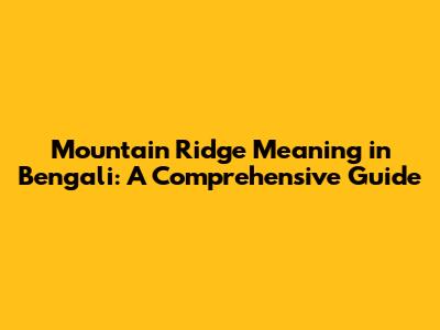 Mountain Ridge Meaning In Bengali: A Comprehensive Guide