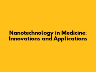 Nanotechnology In Medicine: Innovations And Applications