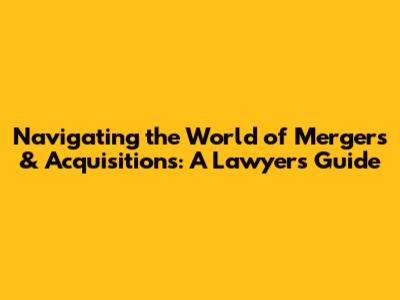Navigating The World Of Mergers & Acquisitions: A Lawyer's Guide