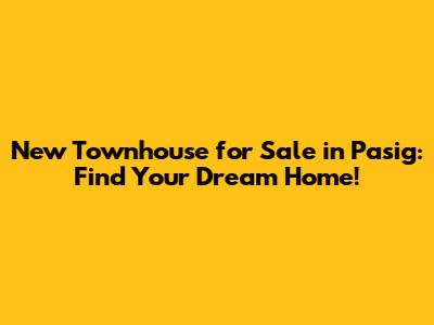 New Townhouse For Sale In Pasig: Find Your Dream Home!
