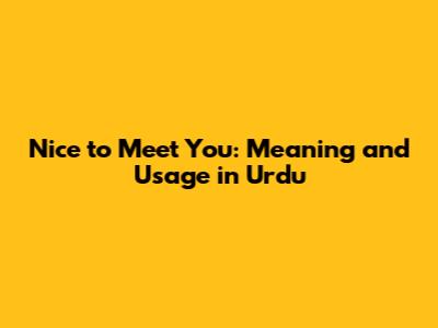 Nice To Meet You: Meaning And Usage In Urdu