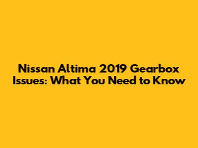 Nissan Altima 2019 Gearbox Issues: What You Need To Know