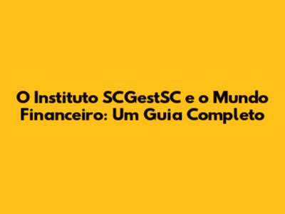 O Instituto SCGestSC E O Mundo Financeiro: Um Guia Completo