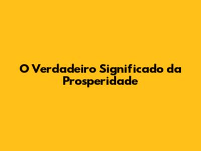 O Verdadeiro Significado Da Prosperidade