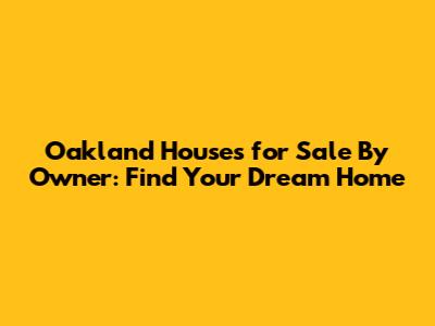 Oakland Houses For Sale By Owner: Find Your Dream Home