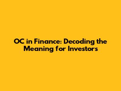 OC In Finance: Decoding The Meaning For Investors