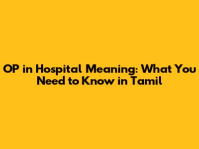 OP In Hospital Meaning: What You Need To Know In Tamil