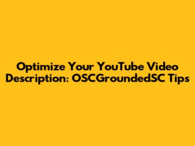 Optimize Your YouTube Video Description: OSCGroundedSC Tips