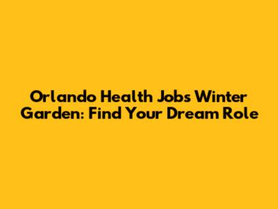 Orlando Health Jobs In Winter Garden: Find Your Dream Role
