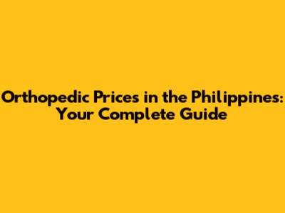 Orthopedic Prices In The Philippines: Your Complete Guide