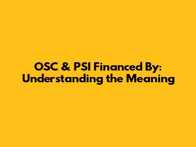 OSC & PSI Financed By: Understanding The Meaning