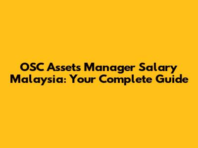 OSC Assets Manager Salary In Malaysia: A Comprehensive Guide