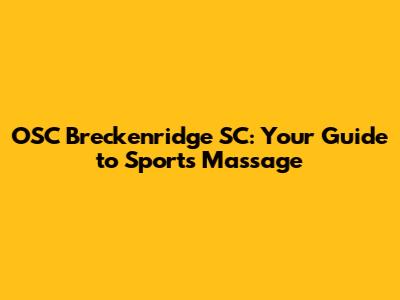 OSC Breckenridge SC: Your Guide To Sports Massage