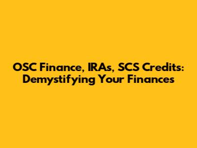 Hey everyone! Navigating the world of finance can sometimes feel like trying to solve a Rubik's Cube blindfolded, right? Especially when you throw in acronyms like OSC Finance, IRAs, and SCS Credits. Don't worry, though; we're going to break it all down in plain English. This guide is your friendly roadmap to understanding these important financial tools and how they can potentially benefit you. We will be covering OSC Finance, Individual Retirement Accounts (IRAs), and SCS Credits. So, grab your favorite beverage, get comfy, and let's dive in! This article aims to provide a clear understanding of each topic, explain how they interact, and offer insights to help you make informed decisions about your financial future. Whether you're a seasoned investor or just starting out, there’s something here for you. We'll explore the basics, the benefits, and the potential pitfalls, ensuring you have the knowledge you need to take control of your financial well-being. By the end, you'll be able to speak the language of finance with confidence and start building a brighter financial future. Ready? Let's go!