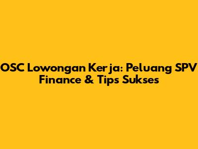 OSC Lowongan Kerja: Peluang SPV Finance & Tips Sukses