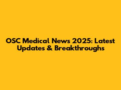 OSC Medical News 2025: Latest Updates & Breakthroughs