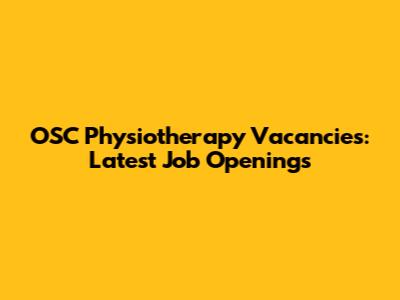 OSC Physiotherapy Vacancies: Latest Job Openings